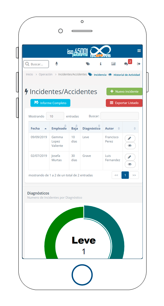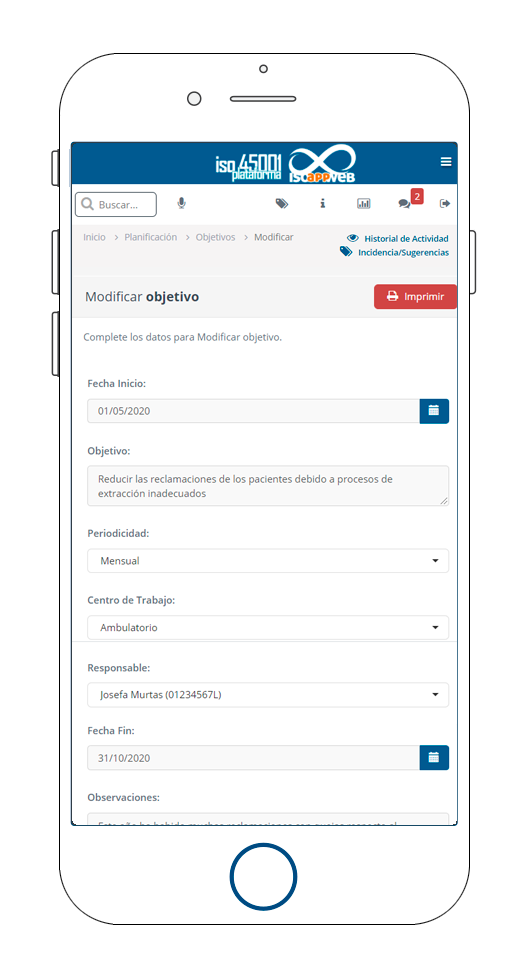 Algunos de los apartados que gestiona el software iso 45001